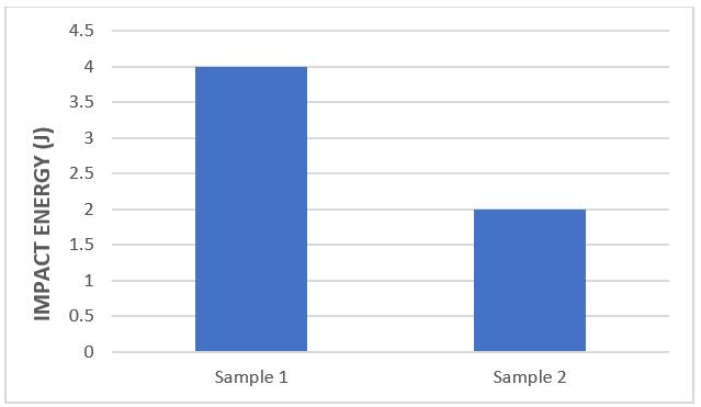 The impact test carried out for the present investigation is Charpy impact test. Figure 21 shows a comparison between energyabsorbedbythevariouscompositesamples.TheSample1showsveryhighimpactenergycomparetoanothersample. TheSample2showsverypoorimpactstrengthof2J.