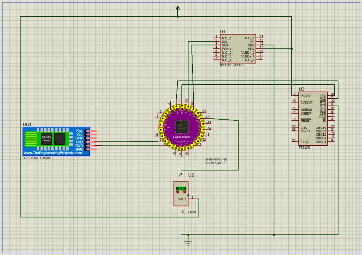 When the microcontroller is turned on, the circuit begins toreadtheheartrate,SpO2,andambienttemperaturefrom theLM 35temperaturesensorandtheMAX30102sensor. TheIR LEDofthepulsesensorglowswhenevera pulseis found.ThephototransistordetectstheflashoftheIRLEDs andmodifiestheresistance.Aninterruptof2millisecondsis established to count the beats per minute (BPM). For wirelessconnection,theHC05Bluetoothmoduleisincluded.