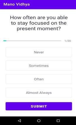 Mental well being is the state of mind of that individual andgivesanoverviewofhis/hergeneralnature.Assessing mental wellness is critical to understanding and suggestingtreatmentsforpatientswithdeviatedcognitive behavior. This project aims to determine the mentally distressed individuals in the target population. The basic form of getting to know about individuals in a population is to get responses to benchmarked questions and rate them depending on their responses. The Short Form 36 Health Survey Questionnaire (SF 36) is employed to provide information about the state of a population's health, aid in planning services, and assess the effectiveness of clinical and social treatments. In addition, the SF 36 evaluates the individual patient's health status and monitors and compares the disease burden. Our App