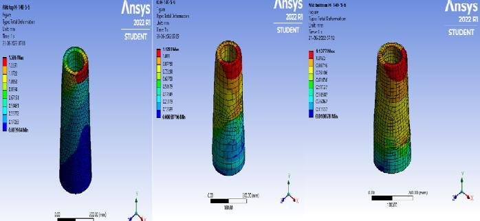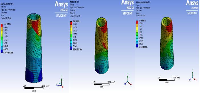 Fig 6:DeformationofTaperedCFDSTcolumnswith inclinednotchat(a)Top(b)Middle(c)Bottom