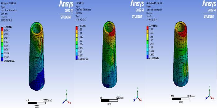 AnalysisiscarriedouttostudytheperformanceofTapered ConcreteFilledDoubleSkinTubularcolumnswithCFRPto strengthen.Nonlinearstaticstructuralanalysisiscarriedout inANSYSsoftware.Deformationand load carryingcapacity isstudied.Thedeformationdiagramsofcolumnspecimens aregivenbelow