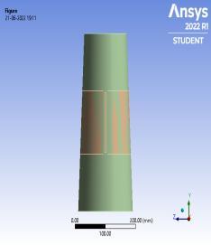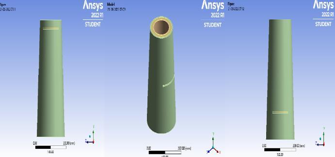 Tapered Concrete Filled Double Skin Tubular columns withlocalgroovecorrosionintheformofartificialnotches aremodelled.18modelsarecreatedusingANSYSsoftware with artificial notches in different direction (vertical, horizontal, inclined) and at different depth (top, middle, bottom).TheconcretetypeusedisM30GradeConcrete