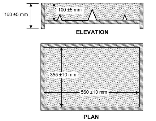 ASTMC1579methodwithstressrisersisthestandardtest method for evaluating plastic shrinkage cracking of restrained fibre reinforced concrete. This test method compares surface cracking of fibre reinforced concrete panels to surface cracking of control concrete panels subjected to specified constraint conditions. This method aimsto quantifythe relativeperformance of a given fresh concretemixturebycontrollingatmosphericvariables.The specimeniscastinamouldofinternalrestraints.Thismould ishavingadepthof100±5mmandrectangulardimensions of355±10mmby560±15mm.Thecentralriseris64±2mm highandservesasaninitiationpointforcracking[13].