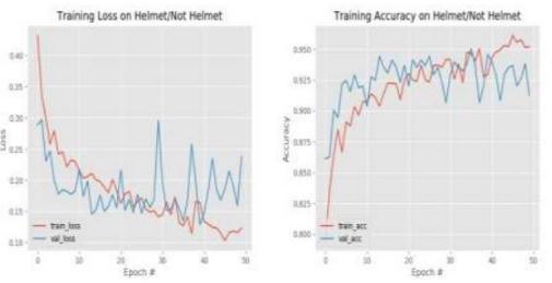 Theobtainedimagecontainsthetwo wheelerrider.Thenext stepistofind,therideriswearinga helmetornot.Thisis doneusinganimageclassifiertrainedtoclassifyhelmetsand nonhelmetobjects.TheclassifierusestheLeNetarchitecture. Thisarchitectureperformswellforlowresolutionandsmall images as it was originally meant to classify handwritten letters. This model trained to classify helmets showed an accuracyof95.2%.Theinputfortheclassifieristhecropped image. It detects the presence or absence of a helmet and returnsthelabelfound.Iftheriderisnotwearingahelmet theboundingboxfortheriderintheimageorvideoisshown inadifferentcolor.