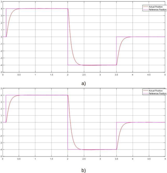 Fig.9.ActualPosition(Red)andReferencePosition (Purple)Waveform a)SVPWMb)SPWM