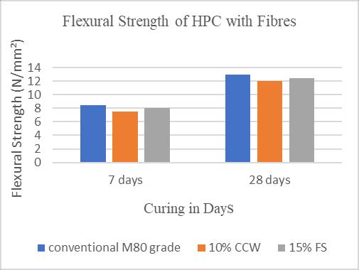 1) Byprovidingthepoly propylenefibresof0.3%dosage byvolumeofcementitiousmaterialtotheHPC,thereisa considerableincreaseinbothcompressionstrengthand flexuralstrengthofthecompositesectioncomparedto conventionalconcrete.
