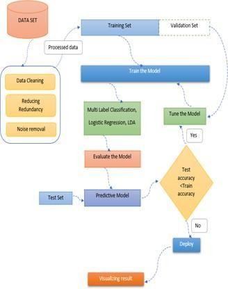 We tried combinations (two algorithms) of different classifyingalgorithmslikeLogisticregression,Multinomial NB,GCDwithOneVsrestclassifiertotrainourmodelusing N grams(to geta semantic sense) andVectorizers (Count, TFIDF,Word
