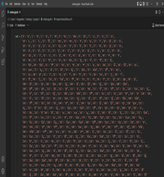 Datacollectionof15,675samplesiscollectedtorecognize alphabet,kagunitaaswellasottakshara.Thepenmovement onthetablethelpstocollectthedataset.Eachdataisstored in different folders.Each folder consistsof 25samples of Kannadacharacter.Pythonlanguageisusedtowritecode fordatacollectionanddataprediction.