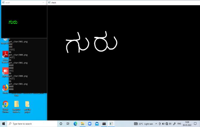 Evenwiththelessdatacollectiontheaccuracyoftheoutput has to be made 100% in the future.So that the writer independentsystemisimplementedandcanbeusedinthe future.Sothatthereisnonecessityofwritingthewordsin theinputwindowasitisinthedatacollection.Itrecognizes for any user handwritten characters in Kannada language whichiswidelyusedinKarnatakabyKannadigas.