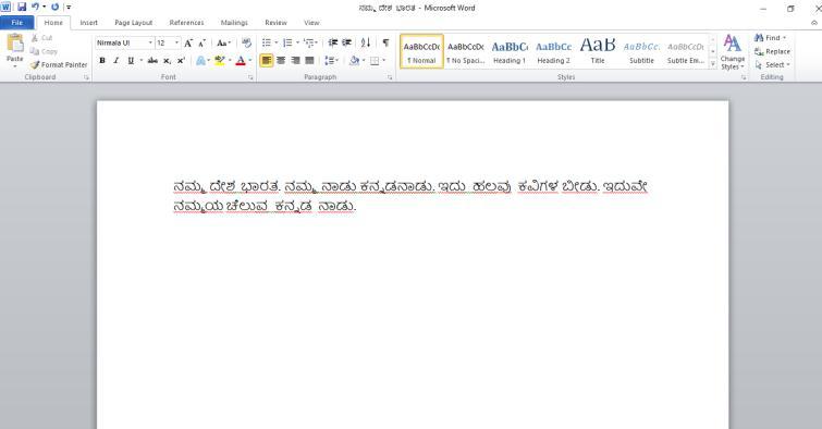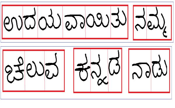 There are 33 Kannada characters in the first line. 11Kannadawordscanbewrittenintheaboveconsidered exampleinA4sizepageasillustratedinthefigure19.After 11words,12th wordcannotbeexecutedinthefirstline.It hasmovetothenextlineofthesentence.