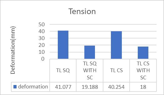 4. UnderTensileloading,itisobtainedthatthesquare hollowsectionwithoutcorrosionandwithcorrosion has some amount of more deformation which is actuallyneglectiblethanCircularHollowsectionby anamountof0.823mmand1.188mmrespectively.