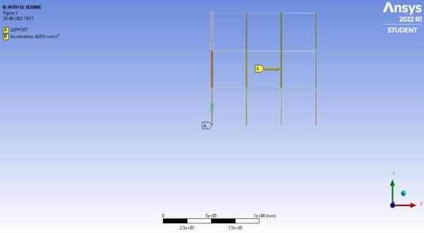 A multi storeyed frame having dimensions 3.6m x 3.6m is taken for the analysis under seismic loading. Surface corrosionisgiveninthebottommostcorneroftheframeas thebaseshearfirsttransferstothecorner.Itisthenwrapped by using 2 and 4 layers of hybrid FRP composites. In this study EL Centro earthquake is taken which has a time durationof55seconds.
