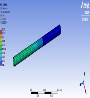 6. Under Torsional loading, it is obtained that the squarehollowsectionwithoutcorrosionandwith corrosion has some amount of more deformation which is actually neglectible than Circular Hollow sectionbyanamount of0.003mmand2.388mm respectively.