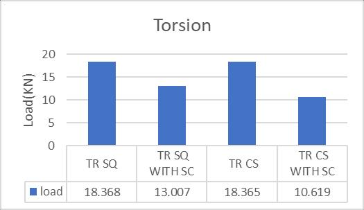 5. Under Torsional loading, it is obtained that the squarehollowsectionwithoutcorrosionandwith corrosion has more load carrying capacity than CircularHollowsectionbyanamountof26.93KN and9.662KN respectively.
