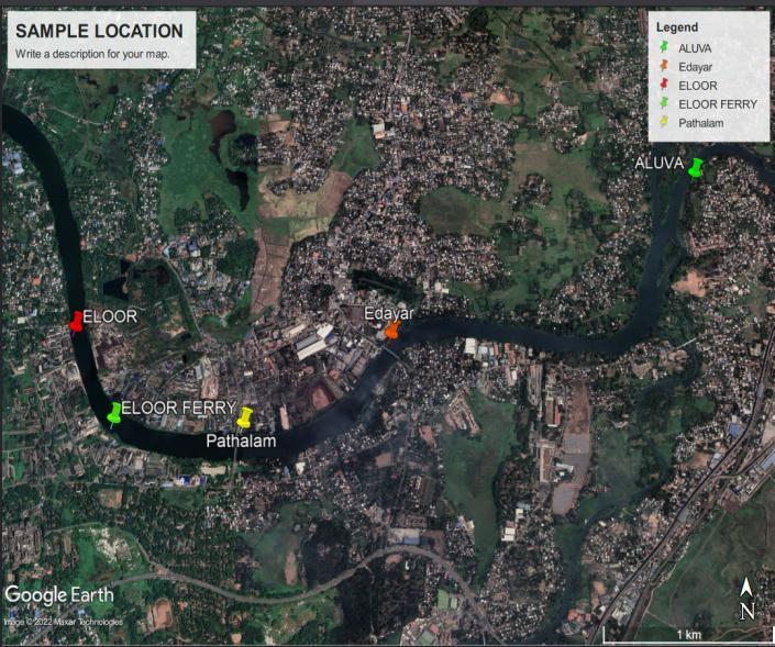 Differentsamplingsiteswereselectedbyunderstatingthe major cause of pollution is industrial discharge. The sampling sites were Aluva, Pathalam, Eloor, Eloor Ferry, Edayar.