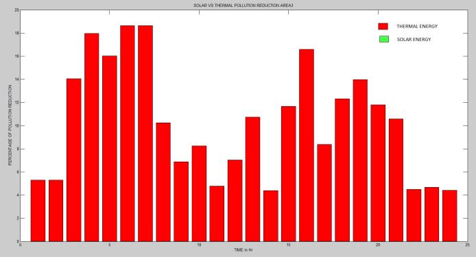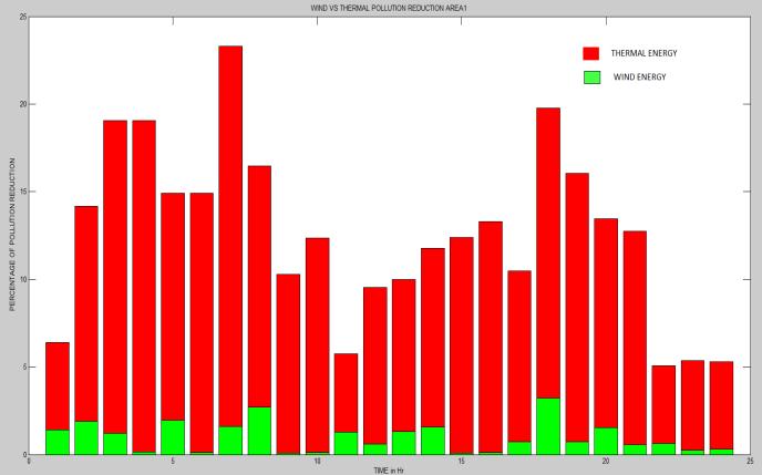 Fig 9(a),Fig 10(c)andFig 11(e)representsthe percentage of pollution reduction in area 1, 2 and 3 respectivelyinwhichthedemandis suppliedbysolarand thermalenergy.SimilarlyFig 9(b),Fig 10(d)andFig 11 (f)representsthepercentageofpollutionreductioninarea 1,2and3respectivelyinwhichthedemandissuppliedby windandthermalenergy.