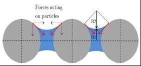 Oncetheconcretesurfacebleedwaterstartsevaporating up to the point exposing the solid surface, the solid particlesatthesurfacethenformacomplicatedsystemof menisci[M.Kayondo,R.Combrinck,W.P.Boshoff2019], asillustratedinFigs.2and3(C early&C later).Oncethis state is reached, the increasing curvature of the water menisciatthesurfacecausesa negative pressureinthe capillarywater[V.Slowik,M.Schmidt,R.Fritzsch2008]. Thenegativecapillarypressuresacttodrawmorewater tothesurfaceofconcrete,andintheprocessacttobring the solid particles as close as possible; but this is counteracted by the repulsive forces between the solid particles.Furtherevaporationatthesurfaceactstoreduce themenisciradiitoathresholdvalue,atwhichpointthe localtensilecapillarypressuresinduceashrinkagestrain which if not withheld by the tensile capacity of the still plasticconcrete,causescrackingtooccur.