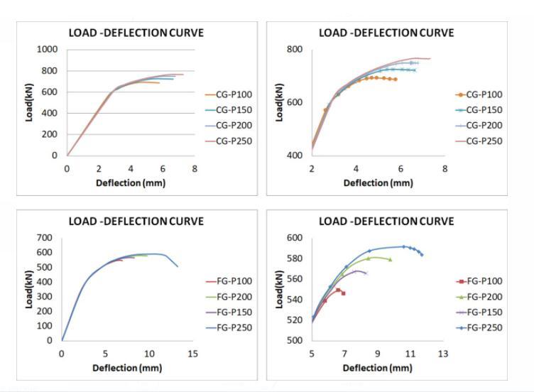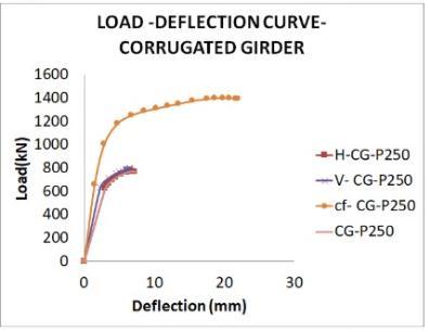 Todeterminetheimprovedperformance,thewebbuckling andloaddeflectioncurvesforbothFGandCGwithhollow flangearecomparedinchart.4.Thewebbucklingisgreatly reducedwhenhollowflangesareusedincorrugatedgirders, accordingtoastudyofwebbucklingandultimateloadfor FGandCG.Additionally,itisclearthatFGhasalowerload bearingcapabilitythanCG.