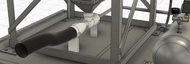 The hopper is attached on the trolley with venturi pumpatitsbasehopperhas2sectionsoneistheprimary hopper second is the secondary hopper. The primary hopper work as the storage for sand and the secondary hopper work as delivery mechanism for venturi pump. The the venturi pump is fixed at the bottom of the upper tothesecondaryhopperandattachedwith2pipesfirstis the intake pipe which comes from the pneumatic storage tankthesecondistheoutletpipewhichgoesthroughthe feelingnozzleforsand.Theintakepipeisconnectedtothe storage tank or compressor which will ideally provide a pressure of 15 to 20 PSI . The pressure can be generated