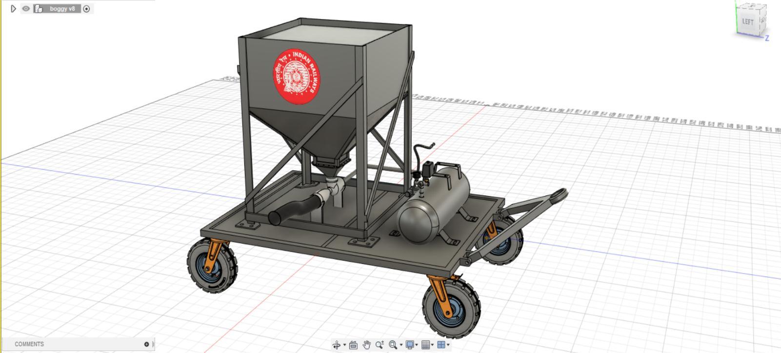 IndianRailwaysiswitnessingProgresseveryyear andthephasehasarrivedwhereIndianRailwayshas taken initiative to electrify its Running Systems and will accomplish its goal by 2030. So we feel effective utilization of resources, reducing wastage of resources and money with proper utilization of manpower will give a boost a to progress. After studying the locomotives, we have come across a designofmachinewhichiscapableofmeeting future needsmachinei.eSandfillingPneumaticMachine.