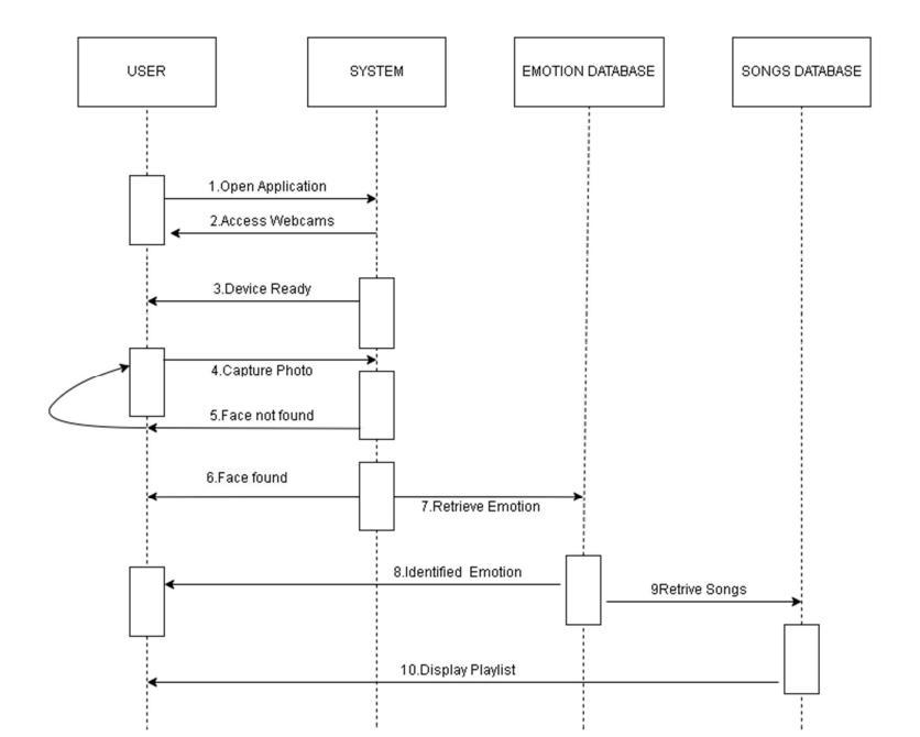 Themainobjectiveoftheworkistoidentifytheemotionof the user and recommend songs based on the identified emotion. The human face is an important organ of an individual‘sbodyanditespeciallyplaysanimportantrolein extractionofanindividual‘sbehaviorsandemotionalstate. Thewebcamcapturestheimageoftheuser.Itthenextracts thefacialfeaturesoftheuserfromthecapturedimageand identifiestheemotion.