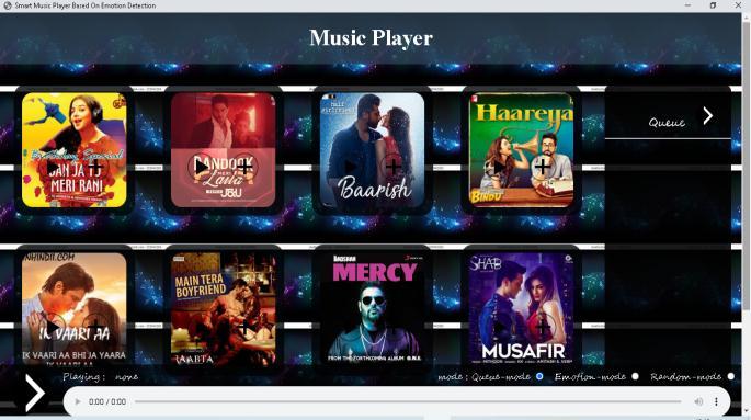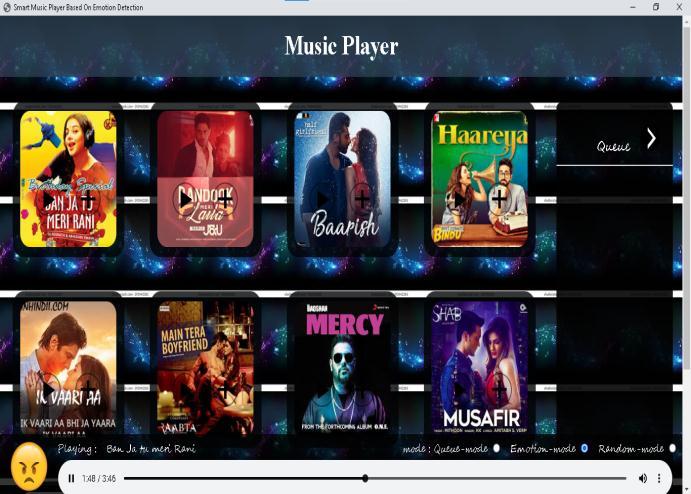songsarerecommendedbasedontheemotiondetected.Itis an automated system where the user need not select the emotionmanually.