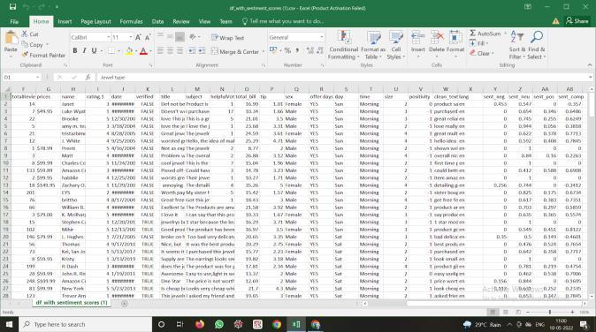 1. Load datasets Dataset overviewed and EDA for Jewellery distribution, Average rating per jewellery then Reviews overview and Convert stringintodatetimefinally,Addpositivitylabel.