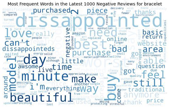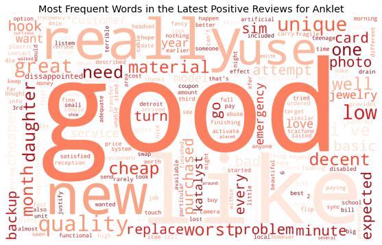 3. Create Word Cloud: The frequency of words is used to create the word clouds and the most recent positive and negative Anklet and Bracelet reviewswereusedtocreatewordclouds.