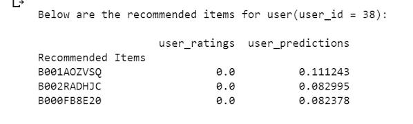 8. Repeat the same procedure as in Step 5.1 on the final ratings matrix in step 3. Hence, predicted ratings along with recommended items and averageratingsaregivenasoutput.