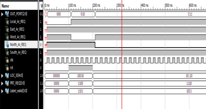 Crossbar Switch and Arbiter module are simulated and verifieditsoperationsuccessfully.Thesimulationresultsof crossbarandarbitermoduleareshowninFig 7andFig 8 respectively.