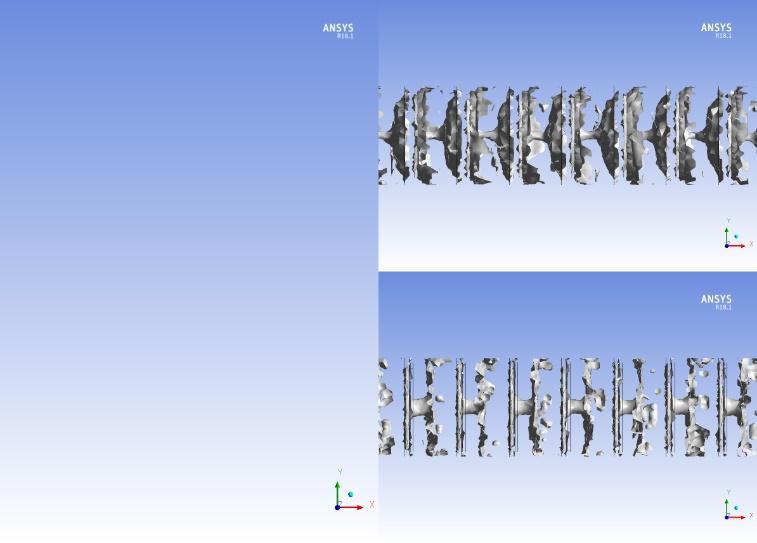 created by the angled baffles/ fins can help to induce smash overflows on the upper, lower and cocoon running end walls of the channel. The appearance of the whirlpool convincedsmash(VI)ledtodrasticincreaseinthethermal performance of the channel. In comparison, the 30 ° cocoon/finperformsbetterthanthe45°oneduetolower pressureloss