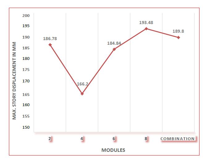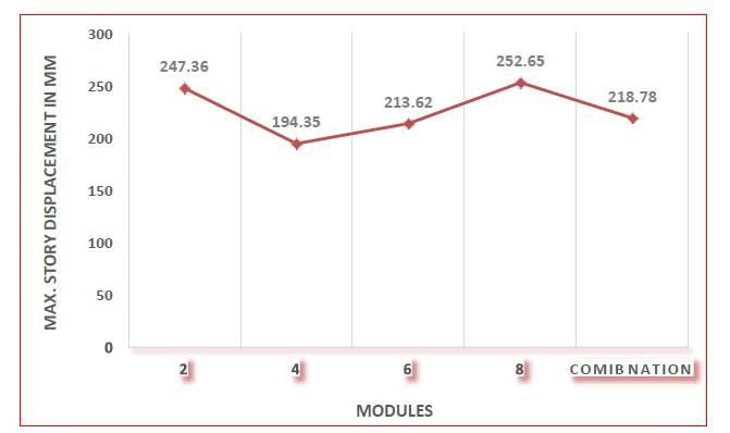 Fig 5:Maximumstoreydisplacementforallmodules modulesinrectangularshapestructure