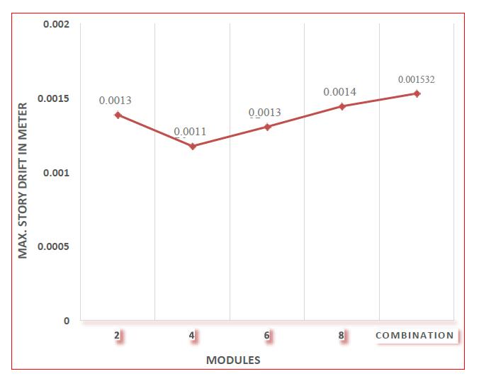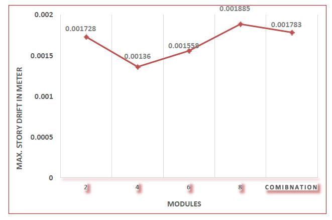Fig 8:MaximumstoreydriftforallmodulesinL shape structure