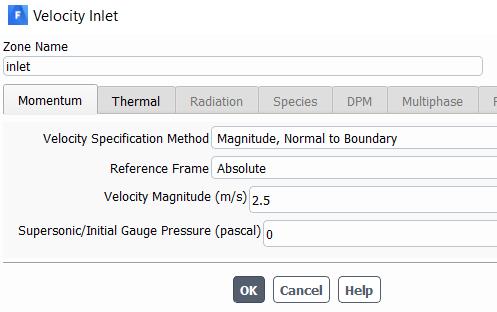 Theboundaryconditionforallcoolingmediumsisthesame. We consider laminar flow with velocity 2.5m/s and temperature23.999994 0c.