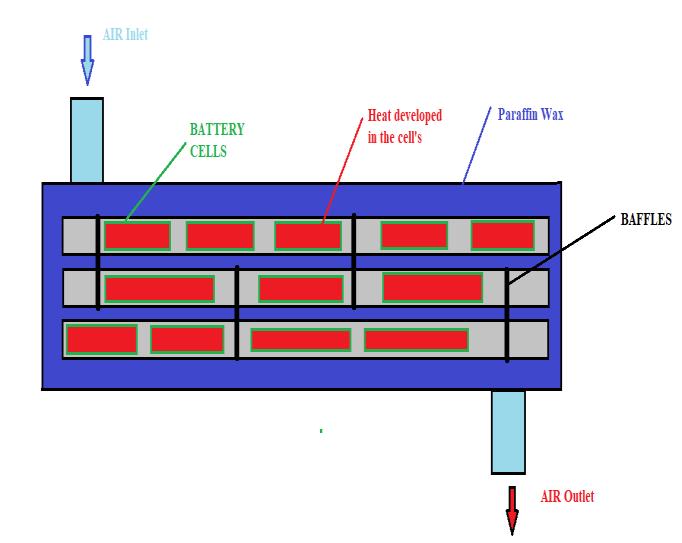 We got the idea for the design and development of the batterypackfromresearchpapers,andwecanincreasethe coolingefficiencybycombiningparaffinwaxwithwater.SoI wrappedparaffinwaxaroundthealuminumplate,andthere were battery cells inside the aluminum plate. We will investigateheattransferefficiencyaroundthebatterycells, aluminum tubes, and chamber using the ANSYS fluent systemandthetransientmethod