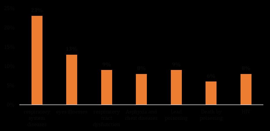 Figure 7 : Diseasesresultingfromexposuretoconcentrationsinexcessofemissions (TheresearcherbasedonthedataoftheGOPP)