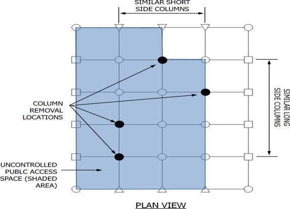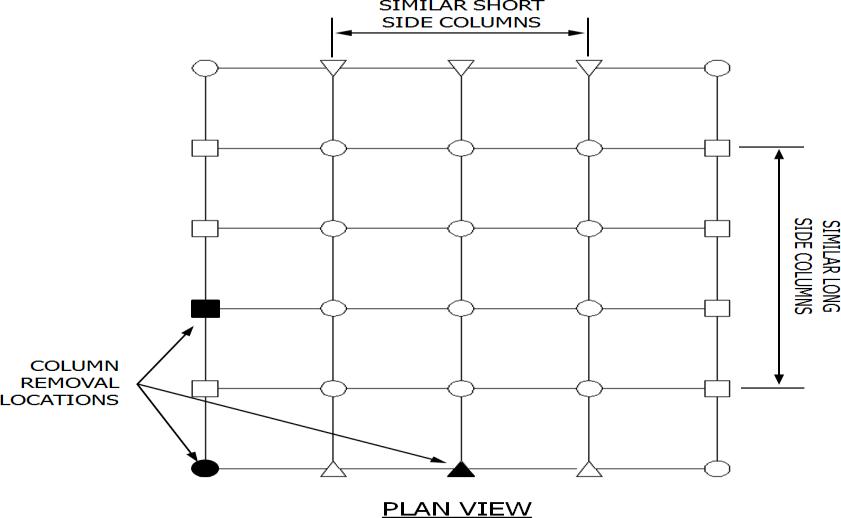 Generallyandasaminimumexternalcolumnsmustberemovalnearthemiddleoftheshortnearthemiddleofthelongside and at the corner of the building .columns must also be removal at location where the plan geometry of the structure changessignificantlysuchasabruptdecreaseinbaysizeandre entrantcornersoratlocationwhereadjacentcolumnsare lightly loaded the bays have different tributary sizes members frame in at different orientation or elevations and other