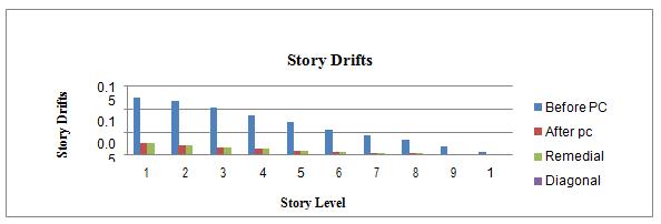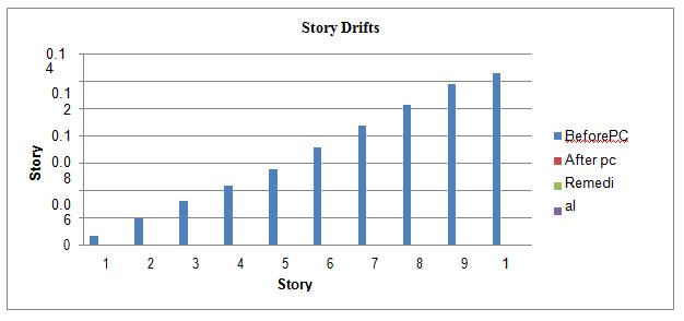 Story Before PC After pc Remedial Diagonal Bracing 1 0.006394 0.000331 0.000298 0.000065 2 0.019369 0.001333 0.00116 0.000056 3 0.031735 0.002364 0.002639 0.000028 4 0.042882 0.003489 0.003309 0.000061 5 0.055461 0.005115 0.004929 0.000267 6 0.071067 0.007516 0.007402 0.000187 7 0.087048 0.010396 0.010204 0.00021 8 0.102665 0.013907 0.013714 0.00015 9 0.117916 0.018690 0.018496 0.000138 10 0.125788 0.022670 0.022476 0.000142