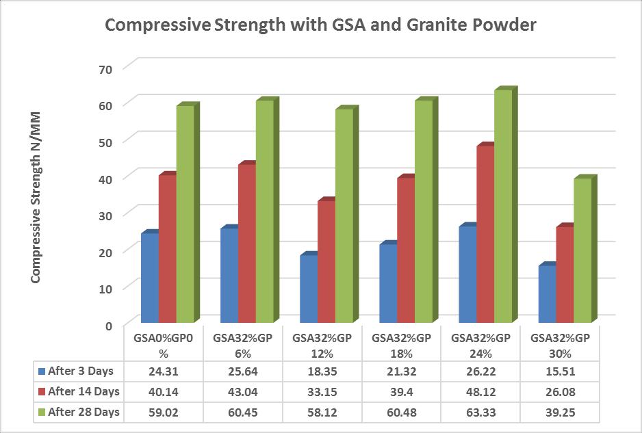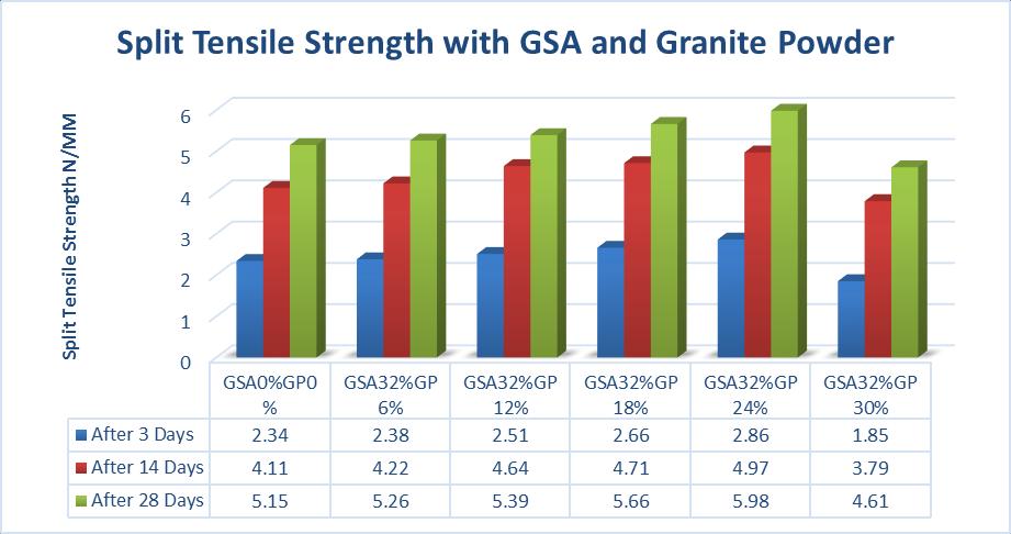 Keywords: Groundnut shell ash (GSA), Granite Powder (GP), Pozzolanic material, Compressive strength, Flexural strengthandSplittensilestrength