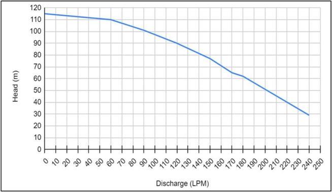 Discharge Head Pump Curve 40mm 50mm 60mm 75mm 0 115 55 5 55 5 55 5 55 5 60 110 67 545 59 599 57 199 56 078 90 101 81 023 64 186 59 100 56 725 120 90 98 983 70 299 61 634 57 587 150 77 121.23 77.873 64.774 58.656 180 62 147 63 86 859 68 499 59 924 210 45 5 178 08 97 221 72 794 61 386 240 29 212 47 108 92 77 646 63 037