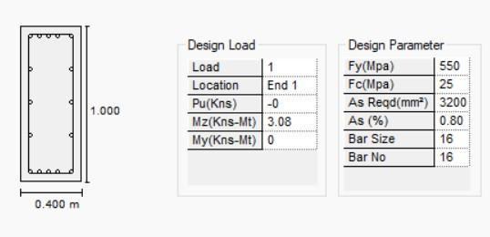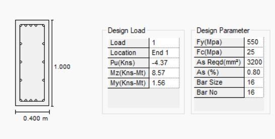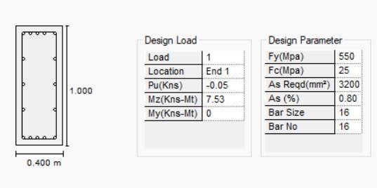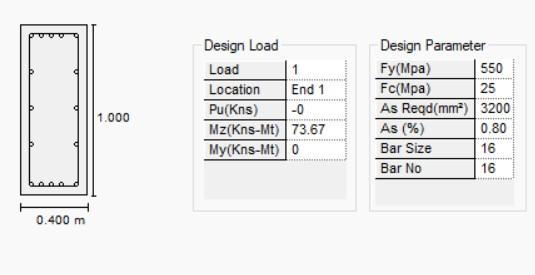 TypicalFloorHeight 3m GradeofConcrete M25 GradeofSteel Fe550 SizeofColumn 400x1000mm SizeofBeams 230x500mm