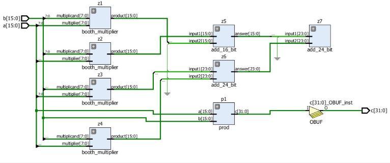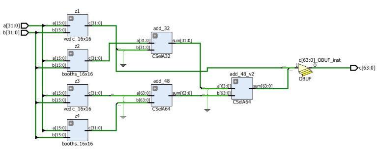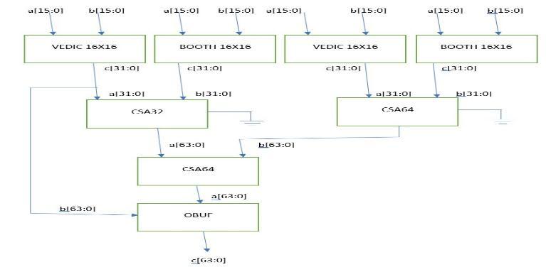 16x16 Booth multiplier is used in this design with 16x16 Vedicmultiplier.