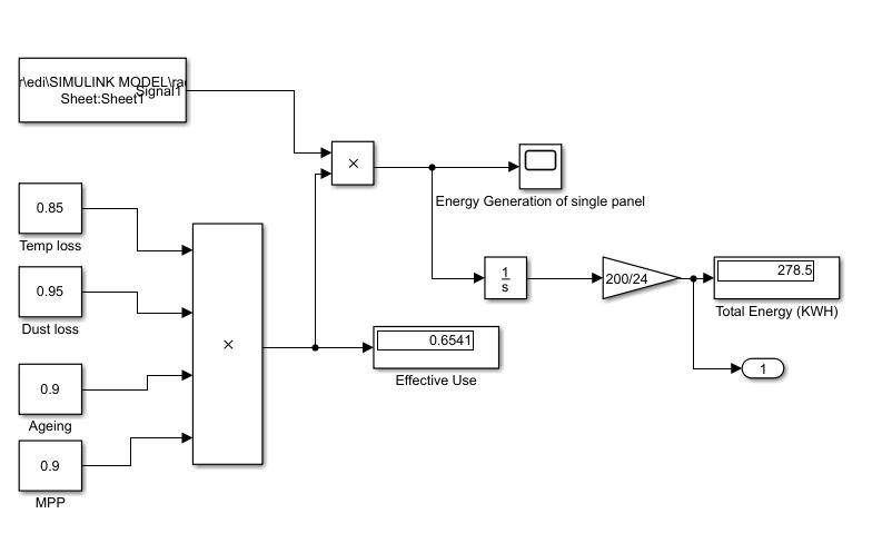Average solar radiation (kWh/day/m2) is found to be 5.41.Supposethelowestmonthsolarhasadailyaverage of5.412.Thatisequivalentto5.41hoursof1000W/m2 sunlighteveryday.Losscalculationfortemperaturewill be 15%, daylight not arresting the panel will be nearly 5%,MPPlosswillbenearlyabout10%,anddustwilladd up loss of 5%, ageing effect will have loss of 10% (J.Barad,2017). Hence total overall power was 0.621 of originalpanelrating.Panelgenerationfactorcameoutto be3.361.