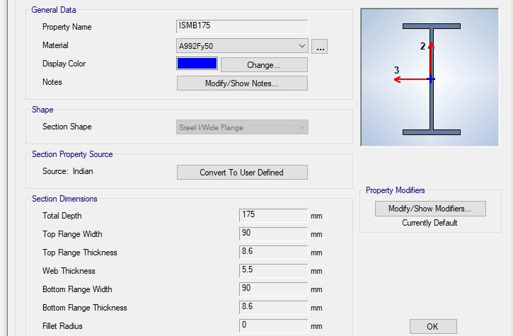 According to AISC 341 16 Provisions, ISMB 175 I Section is used as the link beam. Section dimensionsof 175mmI Sectionisgiveninthebelowfigure.