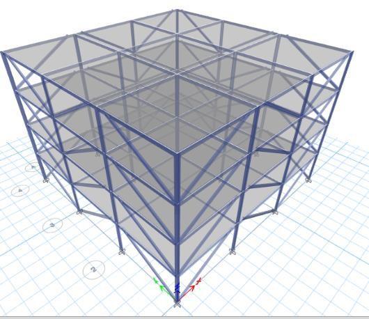 Thefollowingfiguresshows3Dviewandelevationofasteel buildingwithI Sectionlinkbeamofsize200mminbackto backpattern.