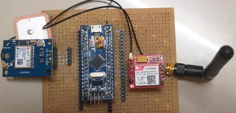 Thewholesystemrelieson3majorcomponentswhichare the Neo 6m GPS module, STM32 and SIM800L GSM module. The GPS module compromise of GPS receiver which is used to fetch out the live coordinates of the person dealingwithdementia.TheGPSmoduleis integrated withtheceramic antenna whichhastheability toreceivetheveryhighfrequencyincomingfromtheGPS satellites.Theco ordinatesfetchedoutbytheGPSmodule is then transmitted to STM32 via serial communication pins.STM32istheheartofthesystemwhichcontrolsand monitors all the activities of the system. After receiving the coordinates from the GPS module, STM32 sends a command to SIM800L GSM module to transmit the location fetched out by GPS module to relatives/desired phonenumberviaSMS.