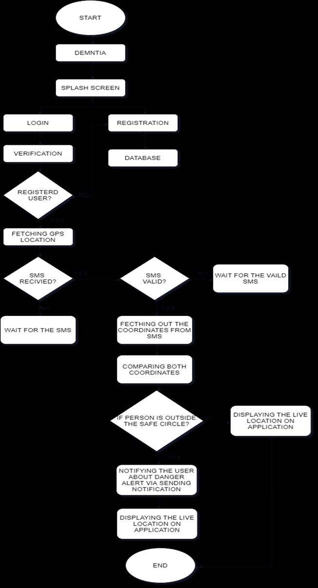 The application is developed for the people dealing with dementia with an aim to make their relatives to be less dependentuponthembykeepinganeyeonthemthrough the application. The application consists ofa signup page fortheuserswhoareregisteringforthefirsttime. Where, theirentereddetailsgetssavedinthedatabase.Inorderto receive the location information the user needs to get himself/herself logged in to ensure proper security and authentication. Which is done by entering the phone number along with the secondary phone number (Hardware SIM card) and password. Once, the user is properlyauthenticated,theapplicationgivesaccesstothe user to receive the SMS from hardware and filter out the location information from the SMS. This location informationcontainslatitudeandlongitudecoordinatesof thepatientwhichisdisplayedonthemapscreenasalerts the user if the patient is not in a distance of 100m from userlocation.