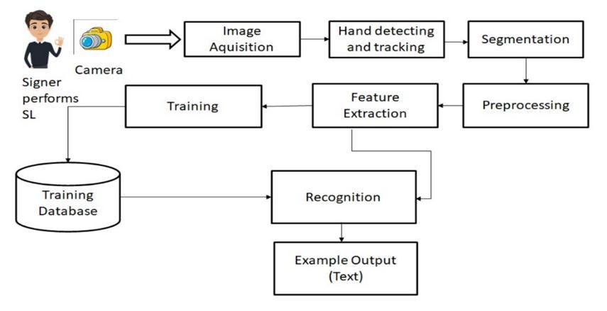 TheSignlanguagerecognitionsystemthatweareproposing, detectsdiversehandmotionsbyrecordingvideoandturning it into frames. The pixels are then split, and the picture is generated and submitted to the learning algorithm for assessment. As a result, our method is more resilient and