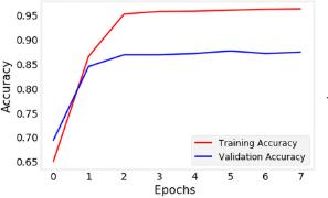 accuracyatthelastepochis95%,whilethetestingaccuracy is85%.