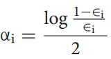 The proportion of the ith weak classifier in the strong classifierisdefinedas Hence,itisinferredthatthesmallertheerrorfunctionis,the larger will be the proportion of the weak classifier in the strongclassifier.